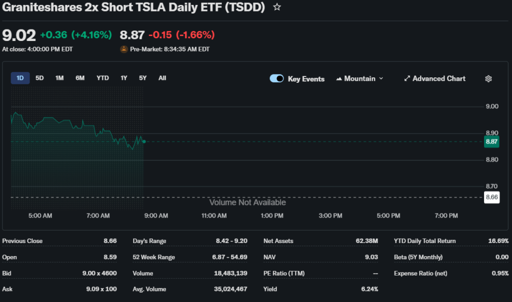 This ETF is mainly used by traders who want to profit from declines in Tesla’s stock price.