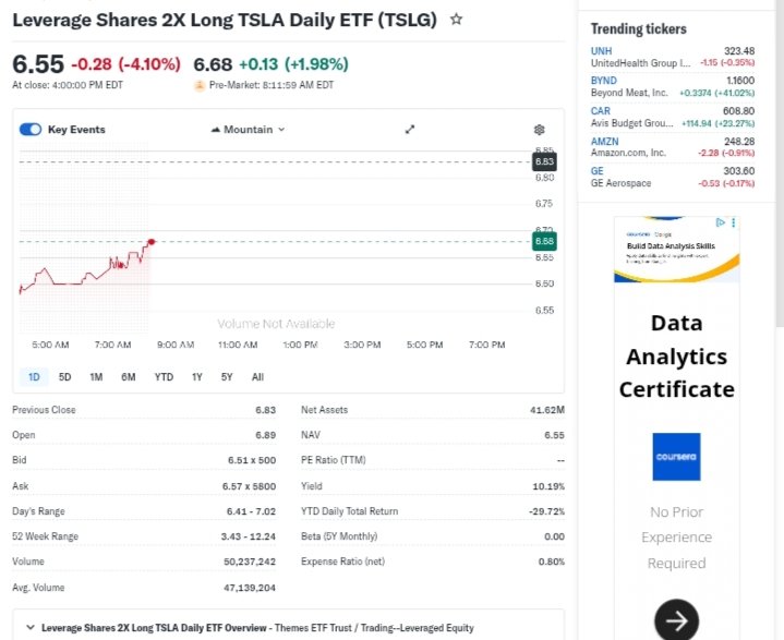Each time Tesla reports earnings beats or optimistic guidance, the TSLG ETF price often spikes sharply, but also tends to give back gains quickly if the broader market or Tesla’s stock remains choppy.