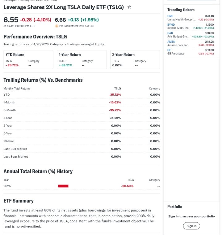 • Implied “valuation”: When Tesla trades at a high P/E already, the TSLG ETF effectively doubles that risk without offering a valuation discount; in downturns, it magnifies losses compared with holding Tesla directly.