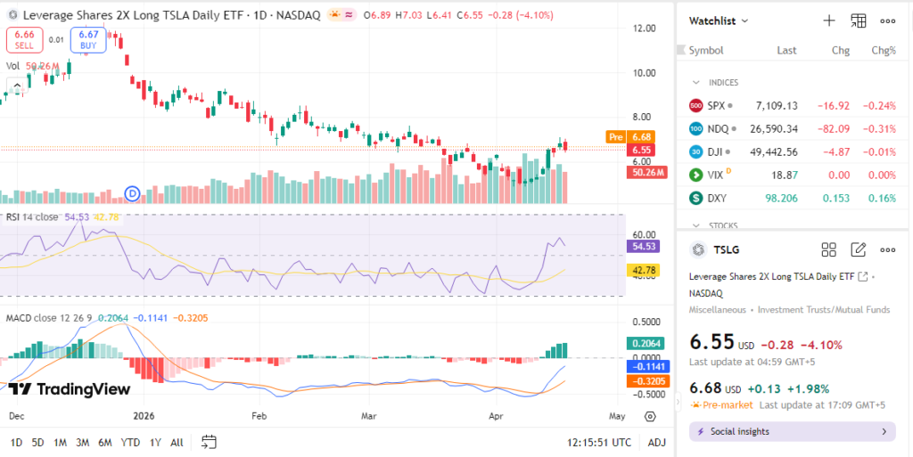 The TSLG ETF (Leverage Shares 2X Long TSLA Daily ETF) is a leveraged exchange‑traded fund that aims to deliver twice the daily return of Tesla Inc. (TSLA) stock, without paying dividends. It is designed for short‑term traders rather than long‑term buy‑and‑hold investors, and has attracted attention as Tesla’s stock swings on earnings, AI news, and regulatory developments. Right now, investors are watching the TSLG ETF price closely because of its amplified risk and volatility versus the broader tech and AI‑focused ETF space.