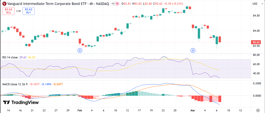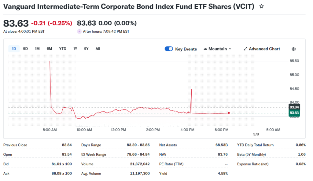 As of last market close on March 5, 2026, VCIT ETF price stood at around $83.94.