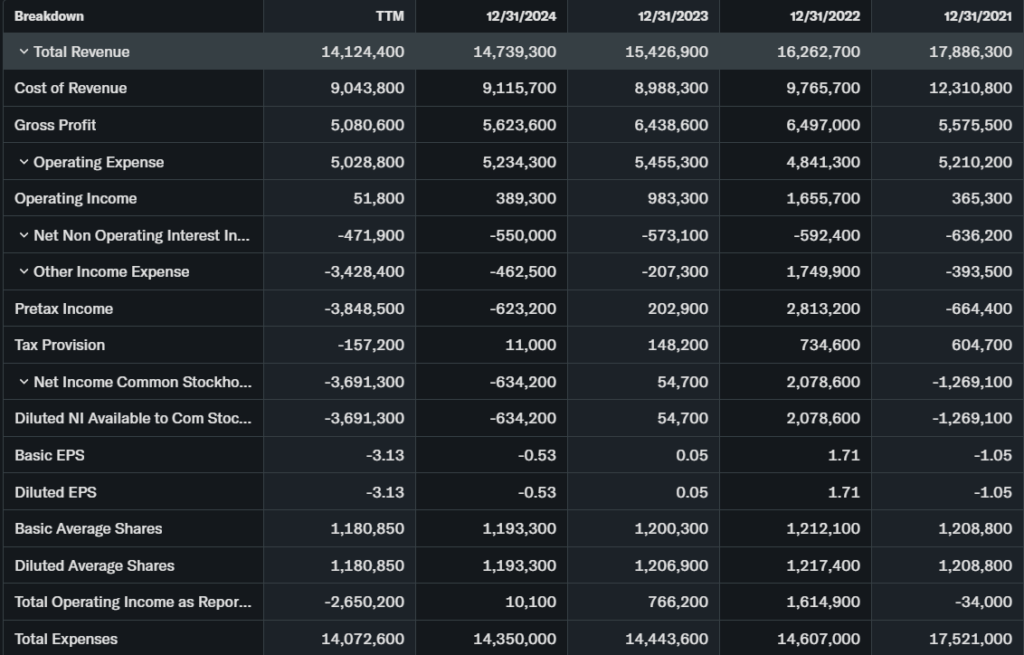Trailing P/E is negative at -3.44 due to past losses; forward P/E 6.08 looks cheap. Price-to-sales is 1.25.