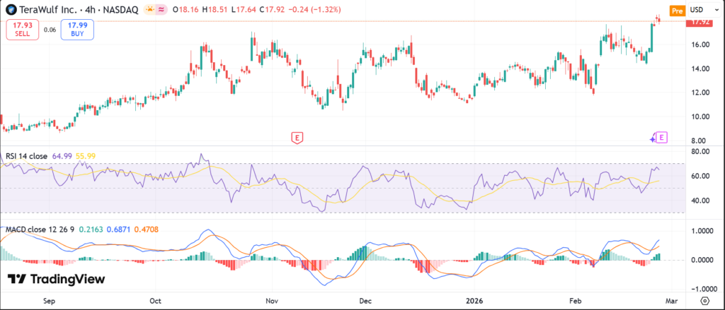 WULF stock closed at $17.92 on the latest trading day, up 2.05% from the prior close. It gained 3.02% in 24 hours but fell 5.61% over five days. The one-month trend shows a 23.61% rise, while year-to-date performance surged over 200% from lows near $2.06.