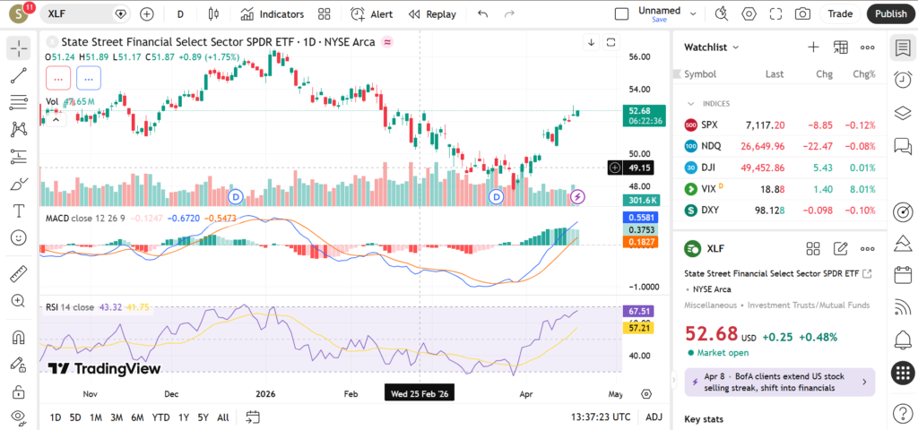 Investors are focusing on XLF ETF as interest rates, inflation, and economic growth directly impact financial sector profitability. Banks benefit from higher rates, while economic slowdowns can pressure earnings.