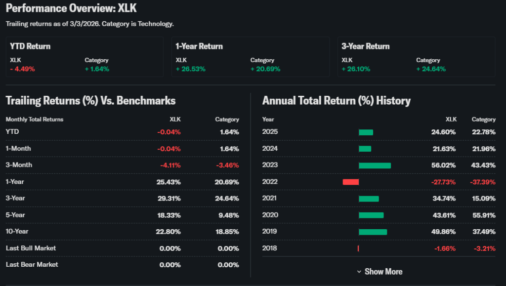 XLK ETF tracks the Technology Select Sector Index. It holds major U.S. tech firms like Microsoft and Nvidia. Investors eye XLK ETF now with AI spending surges in March 2026.